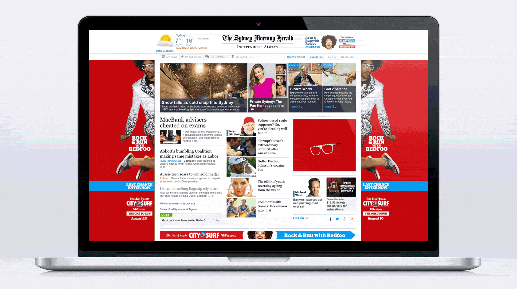 Concept, design & layout – SHD City2Surf – SMH homepage – Superking, mrec, masthead tile & shoestring