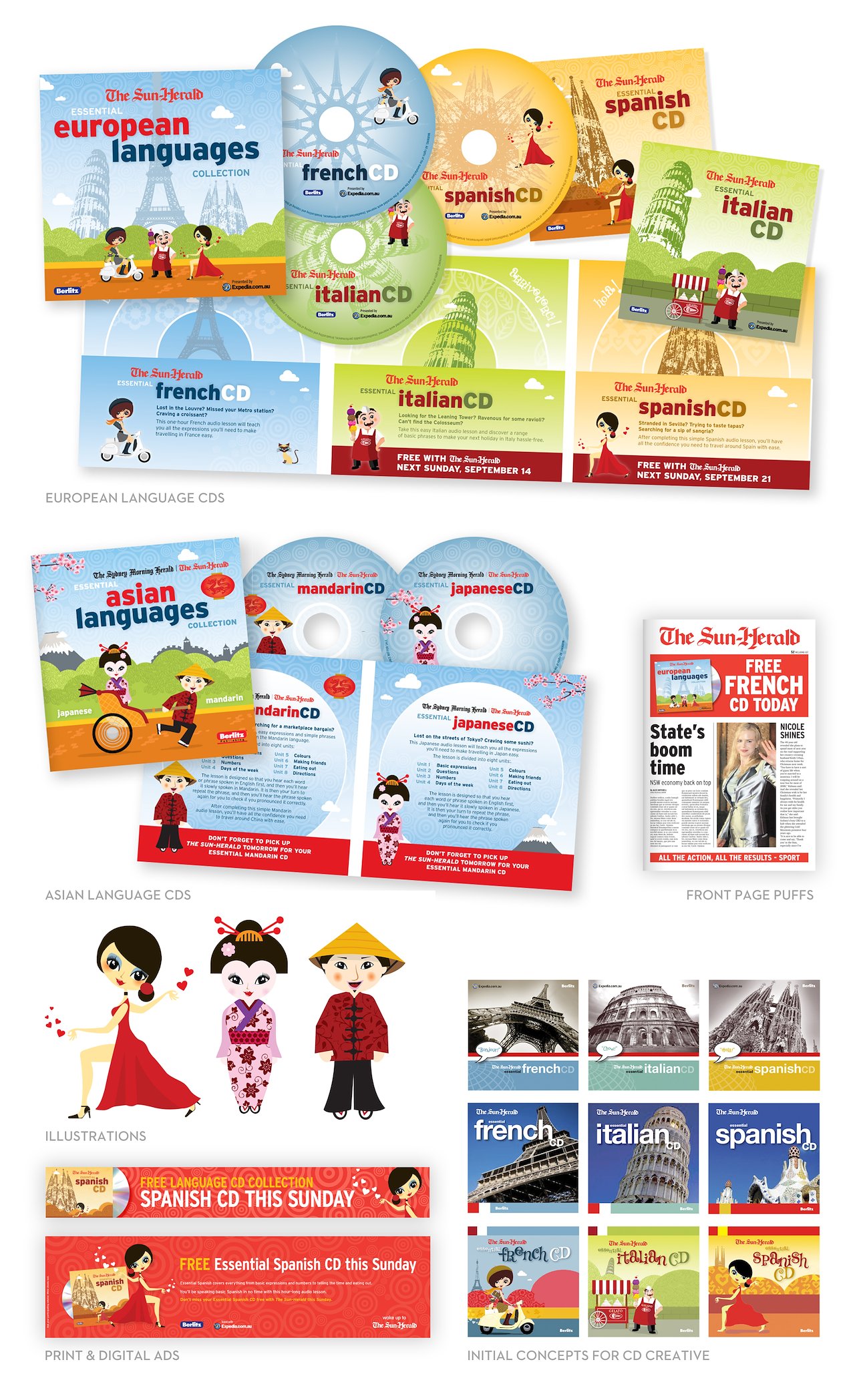 Design & illustrations for Sun-Herald Language CDs, wallets and marketing collateral – PANPA AWARD for best print campaign