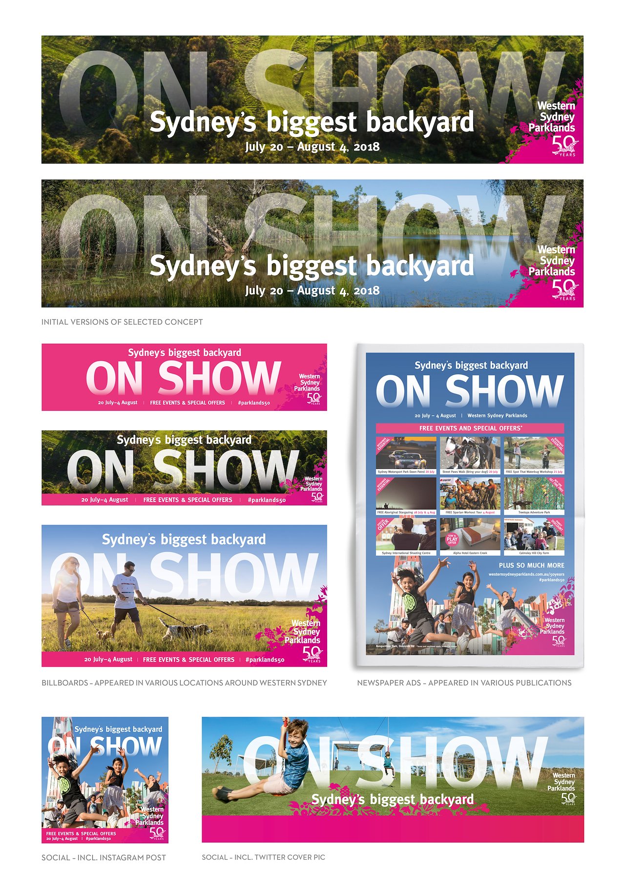 Concept, design & layout – Western Sydney Parklands ‘On Show’ Campaign – all marketing collateral